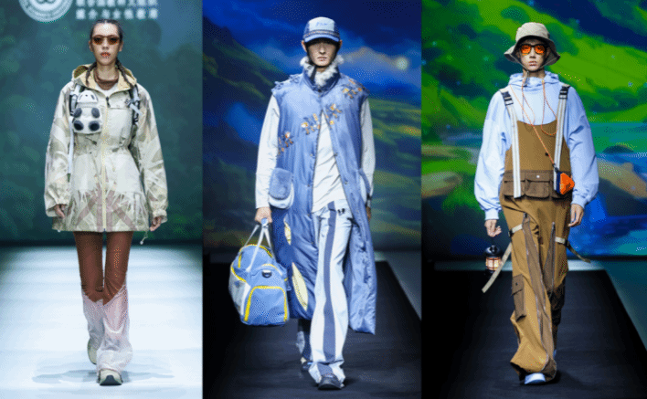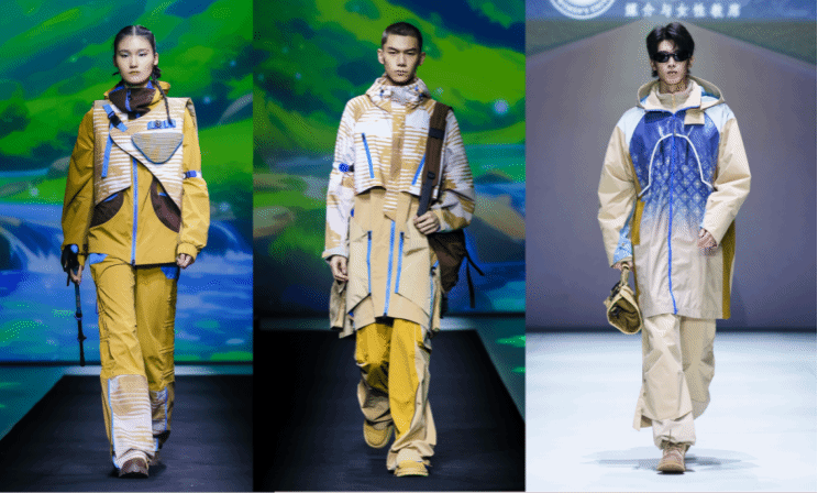 本次发布会的总策划,文化传播与艺术学院院长王露阐释了“悦途她乡”的深意:在后疫情时代,“出发”不仅是地理迁徙,更是心灵的疗愈与重塑。悦途她乡是这次旅途的起点,设计不仅为这场旅途带来身体上的舒适、安全和便利,还成为旅途中抚慰灵魂、寄托情感的媒介。毕业生们以用户需求为核心,将包容性设计理念贯穿创作,巧妙运用中国传统服饰元素与手工技艺,结合模块化功能、科技面料与可持续设计,探索运动场景中人、社会与自然的和谐共生。作品涵盖旅行、徒步、骑行、露营等多元户外场景,既满足身体的安全舒适,亦成为情感共鸣的载体,传递对生活的热爱与远方的诗意向往。