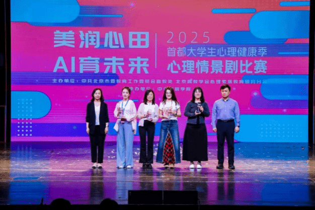 在5月24日中共北京市委教育工作委员会宣教处、北京高教学会心理素质教育研究分会主办的“美润心田 AI育未来”2025年首都大学生心理健康季心理情景剧比赛中,我校心理情景剧《谁说女孩就得这样》荣获二等奖。