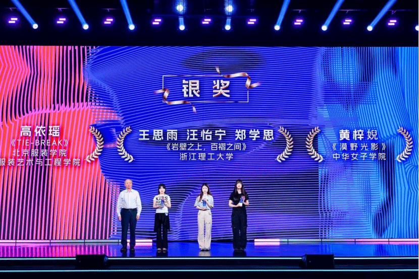 在以“华”韵新章,“峰”尚领航为主题的第二届“千禧”杯服装设计大赛中,邵馨巧(作品《荒野之韵》)、綦若涵(作品《漠野灵踪》)、邝艺琳(作品《怡然听风》、钱李欢(作品《领风》)四位同学的作品成功入围决赛。她们聚焦科技感与时代性,运用创新纤维材料,对运动功能进行了前沿表达,展现了新一代设计师的活力与潜力。