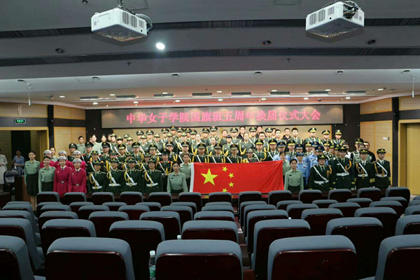中华女子学院国旗班已走过五载时光,五年来,每一届队员都秉承着爱护国旗、守护国旗的信念,刻苦训练、积极进取,在参加各类队列展示及规范升旗比赛中,多次荣获全国和北京市高校一等奖、最佳团体奖和最佳升旗手等多项荣誉。得到了校内外的一致认可。女院国旗班将继续秉承“巾帼青春,崇旗爱国,绿装红颜,勇往直前”的精神,以火红青春,捍卫国旗尊严,以巾帼之志,守卫民族之魂。