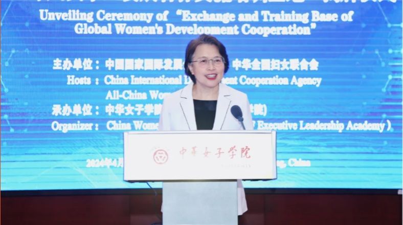 4月29日,“全球妇女发展合作交流培训基地”揭牌仪式在我校举行。全国妇联党组书记、副主席、书记处第一书记黄晓薇,国家国际发展合作署党组书记、署长罗照辉出席活动,共同为基地揭牌并致辞。联合国系统驻华协调员常启德、联合国妇女署中国办公室主任安思齐出席活动并致辞。