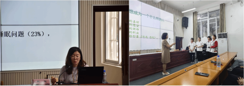 学生工作部心理素质发展中心主任邱阳为“文秀巾帼励志班”的学生工作队伍进行主题为“校园心理危机预防与干预”的主题讲座,从制度文件、研究数据和现实案例三个层面分析青少年学生的心理健康现状,对危机类型及预防要点、常见精神心理障碍识别要点进行讲解,并与老师们交流探讨了心理危机干预的联动机制。心理素质发展中心心理咨询师周俊意为“文秀巾帼励志班”的全体学生开展心理辅导课,引导学生正确认识自己,看到自己的目标,提升自信,争做时代楷模。