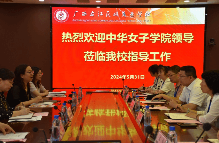 调研座谈会上,百色市妇联党组书记、主席黄玉勉就百色女童教育发展、“文秀巾帼励志班”提升办学特色和知名度等方面做主题讲话,希望中华女子学院分享教育教学经验和资源,推动双方教育领域的互利共赢。广西右江民族商业学校党委书记、校长周罡致辞,并对中华女子学院表示感谢,希望通过引入专业力量、双方紧密合作推进在校学生心理素质发展、加强办学和教育各方面的学习交流;副校长马玉林详细介绍了“广西文秀巾帼励志班”的办学情况。