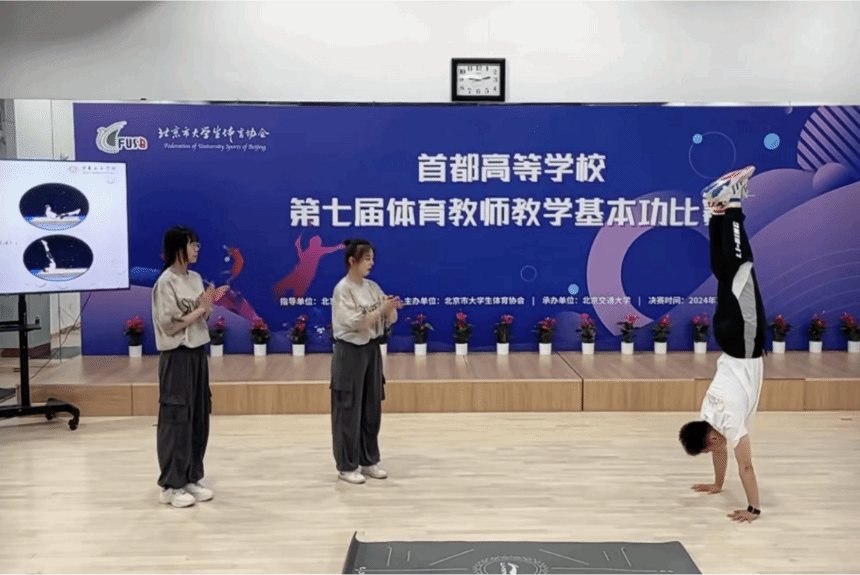 7月4日,由北京市教育委员会指导、北京市大学生体育协会主办的首都高校第七届体育教师教学基本功比赛在北京交通大学举办,来自首都27所高校的27名体育教师参加了此次比赛。我校体育部教师潘朝阳在比赛中斩获一等奖,这也是我校体育教师参加此类比赛获得的最佳成绩,为我校赢得了荣誉!