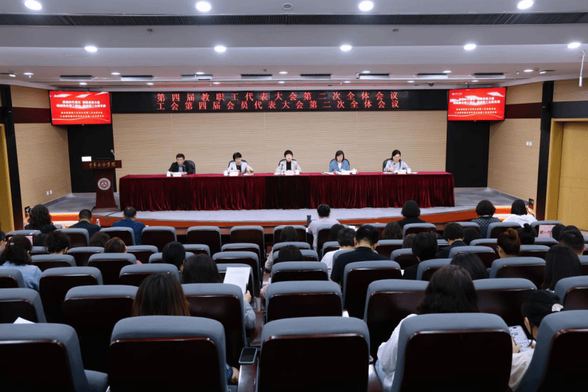 5月13日下午,学校第四届教职工代表大会第二次全体会议、工会第四届会员代表大会第二次全体会议在教图楼一层报告厅召开。党委书记刘亚玫传达学习习近平总书记在庆祝中华全国总工会成立100周年暨全国劳动模范和先进工作者表彰大会上的重要讲话精神,传达全国妇联党组工作部署,并作讲话,院长刘利群作学校工作报告。副院长薛小丽、周应江出席会议。71名教代会代表和48名工代会代表参加会议。大会由党委副书记、教代会执委会主任、工会主席赵浩主持。